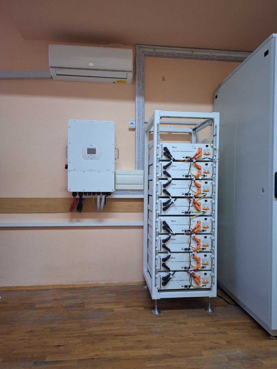 🔹 Акумуляторна система DEYE (LiFePO4) — забезпечує резервне живлення серверної, окремих кабінетів та критичних споживачів у разі зникнення зовнішнього електропостачання.