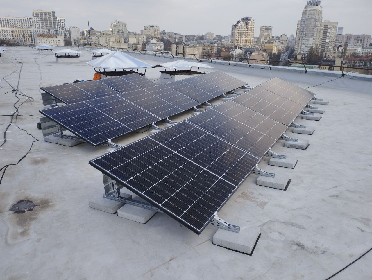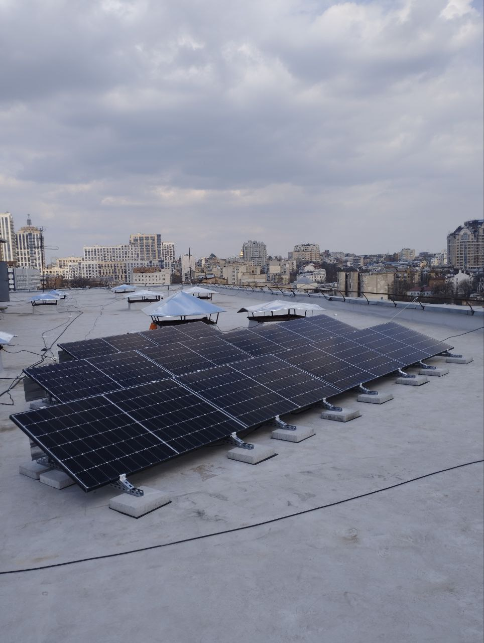 🔹 Сонячні панелі загальною потужністю 10 кВт — генерують електроенергію протягом дня, покриваючи частину споживання закладу та заряджаючи АКБ.