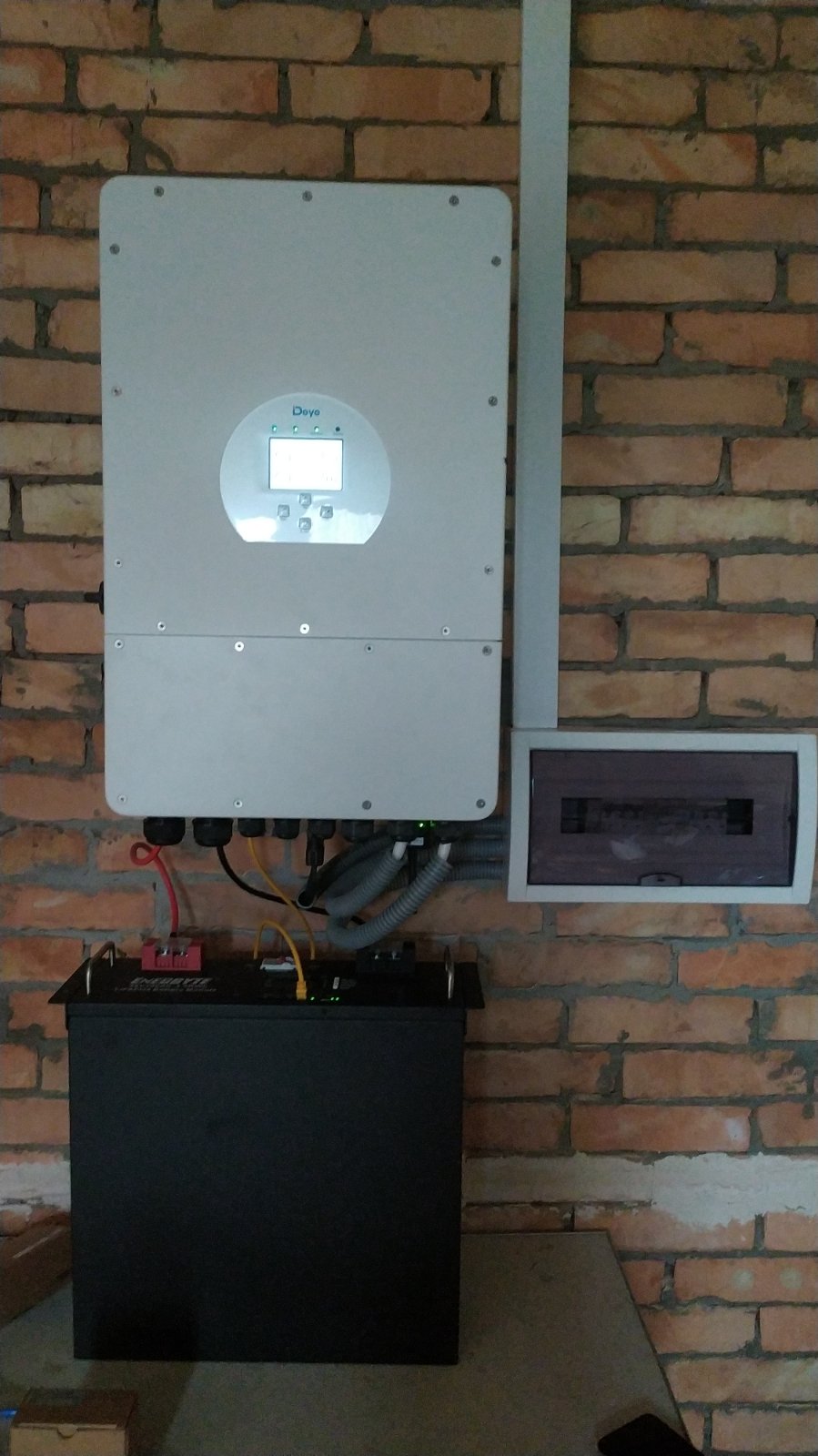 - Інвертора DEYE 5 кВт: Цей інвертор потужністю 5 кВт перетворює постійний струм від сонячних панелей на змінний, який використовується в побутових мережах.